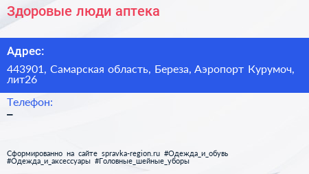 Здоровые люди, аптека по адресу 443901, Самарская область, Береза, Аэропорт Курумоч, лит26 в дальнейшем Организация, размещена в следующих категориях: