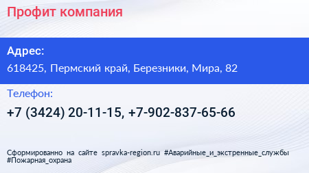 Профит, компания по адресу 618425, Пермский край, Березники, Мира, 82 в дальнейшем Организация, размещена в следующих категориях: