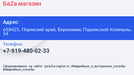БаZa, магазин по адресу 618425, Пермский край, Березники, Парижской Коммуны, 54 в дальнейшем Организация, размещена в следующих категориях: