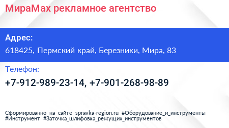 МираМах, рекламное агентство по адресу 618425, Пермский край, Березники, Мира, 83 в дальнейшем Организация, размещена в следующих категориях: