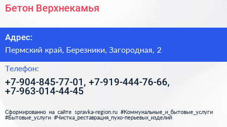 Бетон Верхнекамья по адресу Пермский край, Березники, Загородная, 2 в дальнейшем Организация, размещена в следующих категориях: