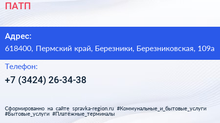 ПАТП по адресу 618400, Пермский край, Березники, Березниковская, 109а в дальнейшем Организация, размещена в следующих категориях: