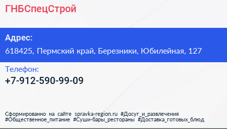 ГНБСпецСтрой по адресу 618425, Пермский край, Березники, Юбилейная, 127 в дальнейшем Организация, размещена в следующих категориях: