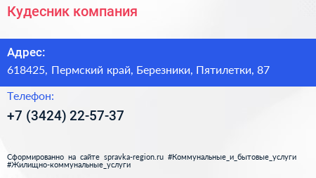Кудесник, компания по адресу 618425, Пермский край, Березники, Пятилетки, 87 в дальнейшем Организация, размещена в следующих категориях: