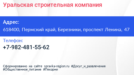 Уральская строительная компания по адресу 618400, Пермский край, Березники, проспект Ленина, 47 в дальнейшем Организация, размещена в следующих категориях: