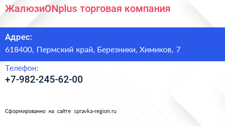 ЖалюзиONplus, торговая компания по адресу 618400, Пермский край, Березники, Химиков, 7 в дальнейшем Организация, размещена в следующих категориях: