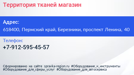 Территория тканей, магазин по адресу 618400, Пермский край, Березники, проспект Ленина, 40 в дальнейшем Организация, размещена в следующих категориях: