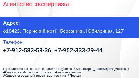 Агентство экспертизы по адресу 618425, Пермский край, Березники, Юбилейная, 127 в дальнейшем Организация, размещена в следующих категориях: