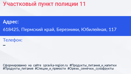Участковый пункт полиции №11 по адресу 618425, Пермский край, Березники, Юбилейная, 117 в дальнейшем Организация, размещена в следующих категориях: