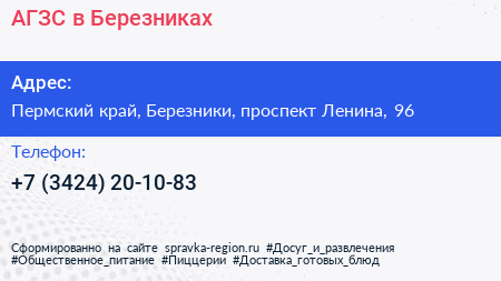 АГЗС в Березниках по адресу Пермский край, Березники, проспект Ленина, 96 в дальнейшем Организация, размещена в следующих категориях: