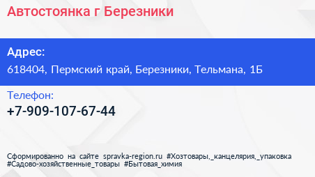 Автостоянка, г. Березники по адресу 618404, Пермский край, Березники, Тельмана, 1Б в дальнейшем Организация, размещена в следующих категориях: