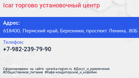 Icar, торгово-установочный центр по адресу 618400, Пермский край, Березники, проспект Ленина, 80Б в дальнейшем Организация, размещена в следующих категориях: