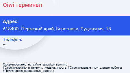 Qiwi, терминал по адресу 618400, Пермский край, Березники, Рудничная, 18 в дальнейшем Организация, размещена в следующих категориях: