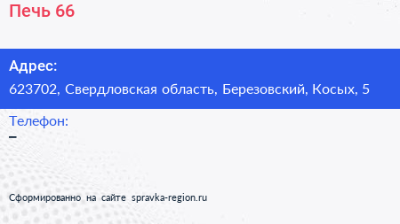 Печь@66 по адресу 623702, Свердловская область, Березовский, Косых, 5 в дальнейшем Организация, размещена в следующих категориях: