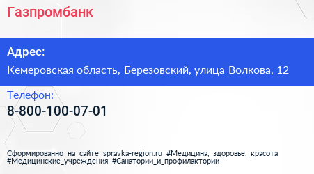 Газпромбанк по адресу Кемеровская область, Березовский, улица Волкова, 12 в дальнейшем Организация, размещена в следующих категориях: