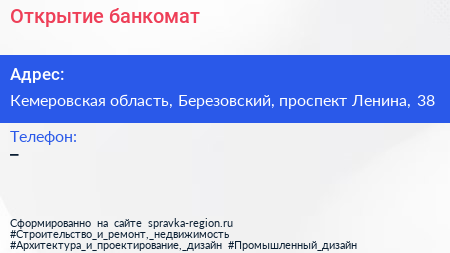 Открытие, банкомат по адресу Кемеровская область, Березовский, проспект Ленина, 38 в дальнейшем Организация, размещена в следующих категориях: