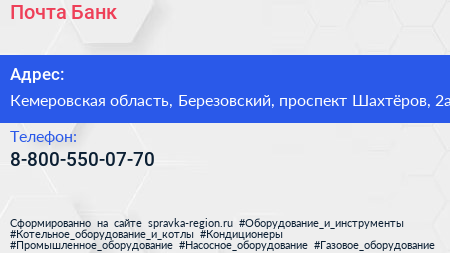 Почта Банк по адресу Кемеровская область, Березовский, проспект Шахтёров, 2а в дальнейшем Организация, размещена в следующих категориях: