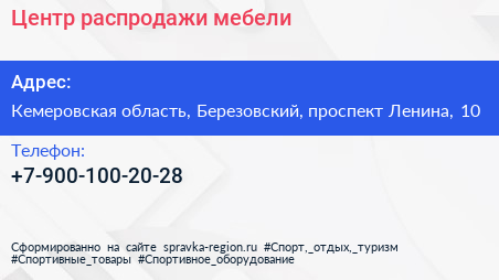 Центр распродажи мебели по адресу Кемеровская область, Березовский, проспект Ленина, 10 в дальнейшем Организация, размещена в следующих категориях: