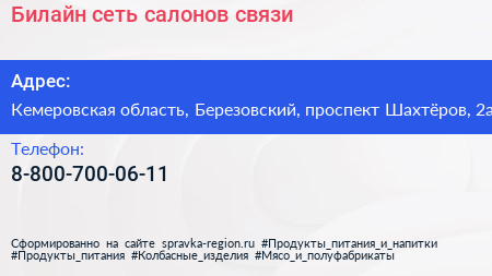Билайн, сеть салонов связи по адресу Кемеровская область, Березовский, проспект Шахтёров, 2а в дальнейшем Организация, размещена в следующих категориях: