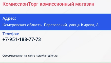 КомиссионТорг, комиссионный магазин по адресу Кемеровская область, Березовский, улица Кирова, 3 в дальнейшем Организация, размещена в следующих категориях: