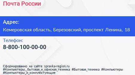 Почта России по адресу Кемеровская область, Березовский, проспект Ленина, 18 в дальнейшем Организация, размещена в следующих категориях: