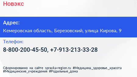 Новэкс по адресу Кемеровская область, Березовский, улица Кирова, 9 в дальнейшем Организация, размещена в следующих категориях: