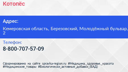 Котопёс по адресу Кемеровская область, Березовский, Молодёжный бульвар, 2 в дальнейшем Организация, размещена в следующих категориях: