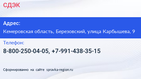 СДЭК по адресу Кемеровская область, Березовский, улица Карбышева, 9 в дальнейшем Организация, размещена в следующих категориях: