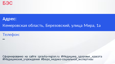 БЭС по адресу Кемеровская область, Березовский, улица Мира, 1а в дальнейшем Организация, размещена в следующих категориях: