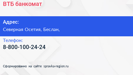 ВТБ, банкомат по адресу Северная Осетия, Беслан, в дальнейшем Организация, размещена в следующих категориях: