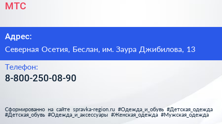 МТС по адресу Северная Осетия, Беслан, им. Заура Джибилова, 13 в дальнейшем Организация, размещена в следующих категориях: