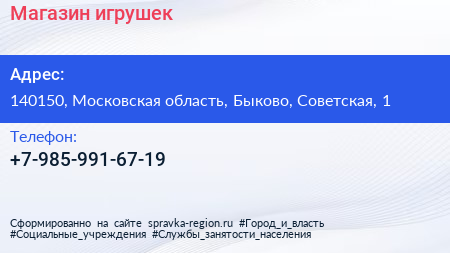 Магазин игрушек по адресу 140150, Московская область, Быково, Советская, 1 в дальнейшем Организация, размещена в следующих категориях:
