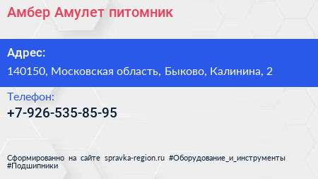 Амбер Амулет, питомник по адресу 140150, Московская область, Быково, Калинина, 2 в дальнейшем Организация, размещена в следующих категориях: