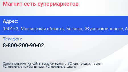 Магнит, сеть супермаркетов по адресу 140153, Московская область, Быково, Жуковское шоссе, 6 в дальнейшем Организация, размещена в следующих категориях: