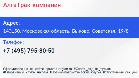 АлгаТрак, компания по адресу 140150, Московская область, Быково, Советская, 19/8 в дальнейшем Организация, размещена в следующих категориях: