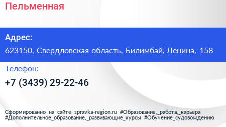 Пельменная по адресу 623150, Свердловская область, Билимбай, Ленина, 158 в дальнейшем Организация, размещена в следующих категориях: