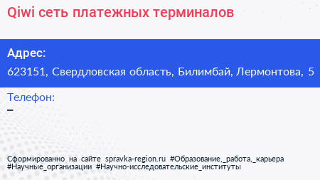 Qiwi, сеть платежных терминалов по адресу 623151, Свердловская область, Билимбай, Лермонтова, 5 в дальнейшем Организация, размещена в следующих категориях:
