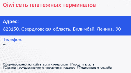 Qiwi, сеть платежных терминалов по адресу 623150, Свердловская область, Билимбай, Ленина, 90 в дальнейшем Организация, размещена в следующих категориях: