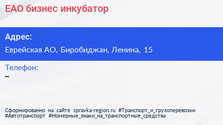 ЕАО, бизнес-инкубатор по адресу Еврейская АО, Биробиджан, Ленина, 15 в дальнейшем Организация, размещена в следующих категориях: