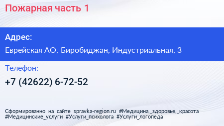 Пожарная часть №1 по адресу Еврейская АО, Биробиджан, Индустриальная, 3 в дальнейшем Организация, размещена в следующих категориях: