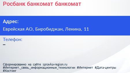 Росбанк, банкомат, банкомат по адресу Еврейская АО, Биробиджан, Ленина, 11 в дальнейшем Организация, размещена в следующих категориях: