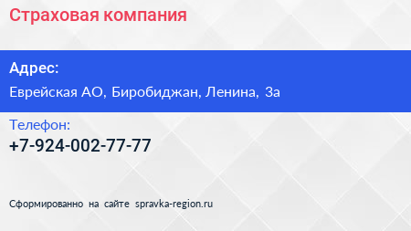 Страховая компания по адресу Еврейская АО, Биробиджан, Ленина, 3а в дальнейшем Организация, размещена в следующих категориях: