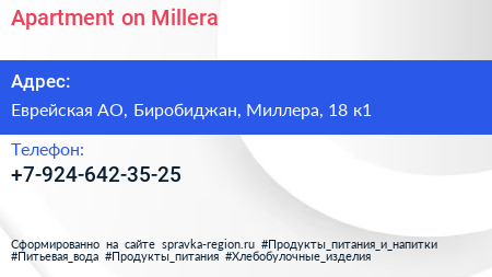 Apartment on Millera по адресу Еврейская АО, Биробиджан, Миллера, 18 к1 в дальнейшем Организация, размещена в следующих категориях: