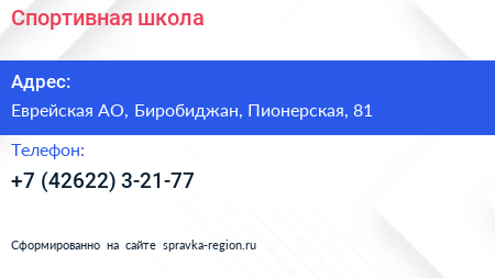Спортивная школа по адресу Еврейская АО, Биробиджан, Пионерская, 81 в дальнейшем Организация, размещена в следующих категориях: