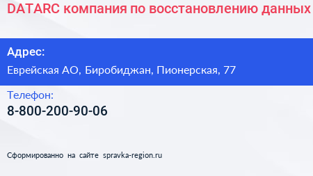 DATARC, компания по восстановлению данных по адресу Еврейская АО, Биробиджан, Пионерская, 77 в дальнейшем Организация, размещена в следующих категориях: