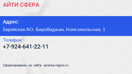 АЙТИ СФЕРА по адресу Еврейская АО, Биробиджан, Комсомольская, 1 в дальнейшем Организация, размещена в следующих категориях: