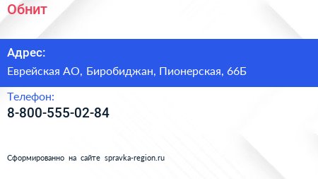 Обнит по адресу Еврейская АО, Биробиджан, Пионерская, 66Б в дальнейшем Организация, размещена в следующих категориях: