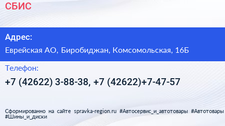 СБИС по адресу Еврейская АО, Биробиджан, Комсомольская, 16Б в дальнейшем Организация, размещена в следующих категориях: