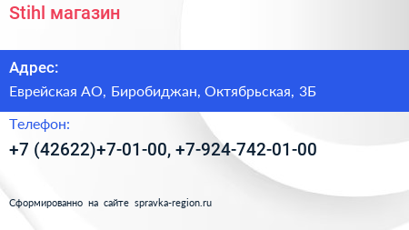 Stihl, магазин по адресу Еврейская АО, Биробиджан, Октябрьская, 3Б в дальнейшем Организация, размещена в следующих категориях: