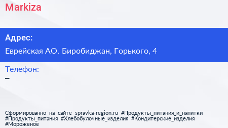 Markiza по адресу Еврейская АО, Биробиджан, Горького, 4 в дальнейшем Организация, размещена в следующих категориях: